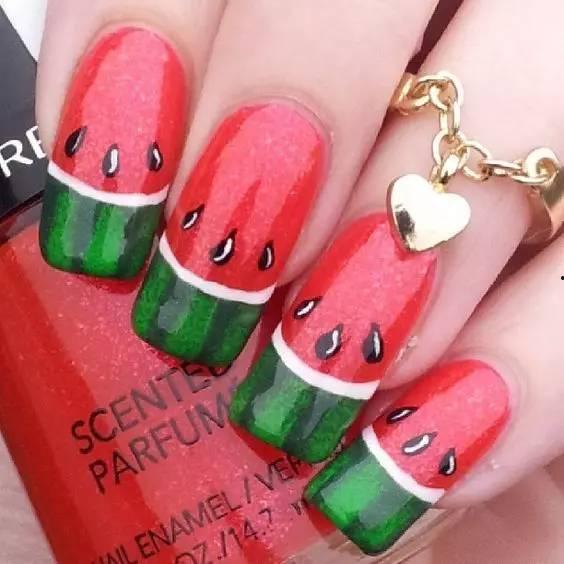 1. 水果主题:瓜哥的美甲作品中最受欢迎的就是水果主题。草莓、西瓜、葡萄,各种水果元素在他的指尖上绽放,色彩鲜艳,栩栩如生。